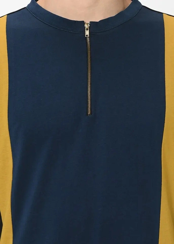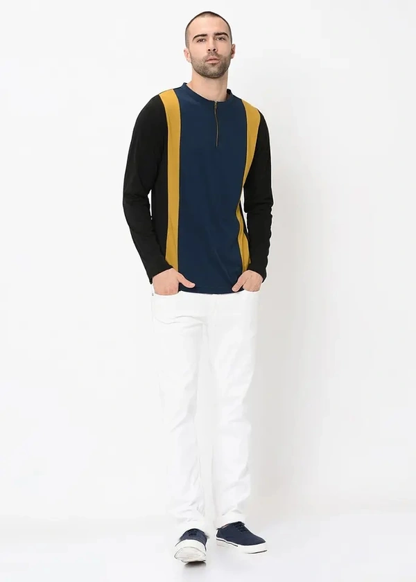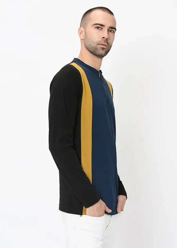 Three-Tone Colour Block Henley Zip Up T-Shirt